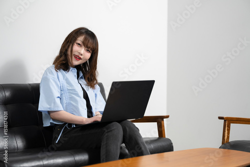 woman, notebook, business, mobile phone, smartphone, office, cyberspace, tablet, businesswoman, work, noto, call, lifestyle, technology, computer, couch, person, beauty, student, familiar, indoor, reading, home, desk, professional, table, online, 1, success, japanese