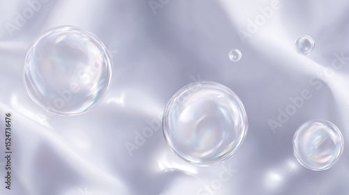 シルクのような背景に漂う虹色の光を含む泡のイラスト(美容・コスメ・デジタル)