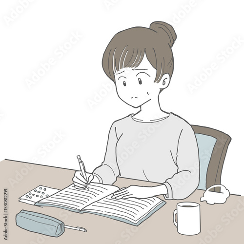 手帳を記入する女性 モヤモヤ