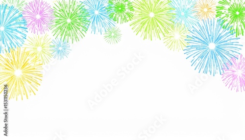 background, wallpaper, fireworks, watercolor, handwriting, summer, festival, spark, sky, green, blue, sky blue, blue, green, chartreuse