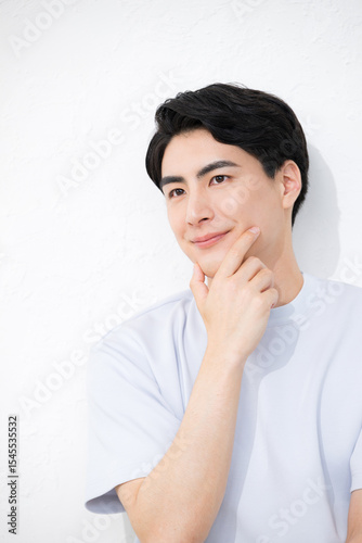 beard, epilation, skincare, cosmetic, beauty, young, man, touch, hand, beard, people, waist up, skin, este, face, barbed, lifestyle, copy space, black hair, white, cool, indoor, cleanliness, relax, trouble, asian, japanese, 30s, portrait, refreshing, massage, good-looking, care, smile