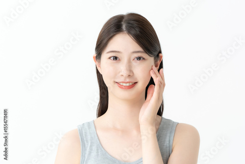 asian, japanese, woman, 30s, long hair, beauty, beauty, skincare, up, lifestyle, smile, pretty, latex, cosmetic, toilet water, ultraviolet, cosmetic, este, young, skin, measure, ol, homemaker, penetration, middle-aged, black hair, white background