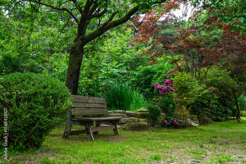 park, chair, bench, forest, leaf, forest, flower, nature, green, foliage, grass