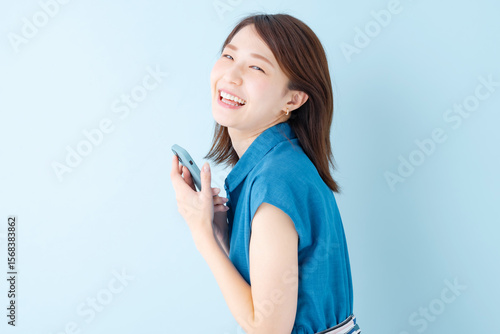 woman, smartphone, smartphone, mobile phone, call, mobile, mail, cyberspace, net, girl, blue, chroma key, blue, sky blue, summer, spring, smile, sweet, pretty, korean, japanese, asian, fashion, communication, technology, music, delivery, motion picture, photo, charge, call, message, app, lifestyle, contact, smile, fun, joyful, rejoice