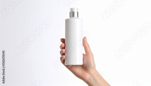 hand, bottle, container, container, plastic, toilet water, skincare, cosmetic, mock-up, grab, hold, white