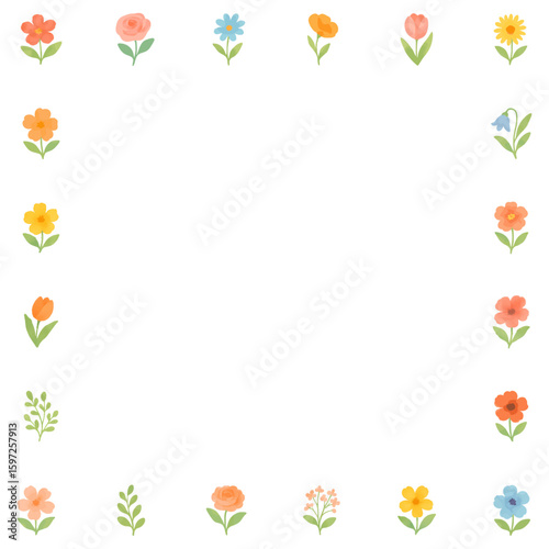 다양한 꽃 아이콘 테두리 장식, 상큼한 봄 일러스트 프레임 디자인