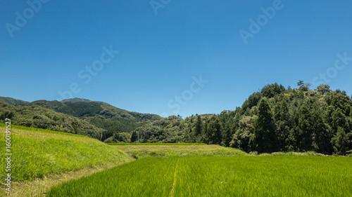 landscape, sky, grass, nature, green, mountain, summer, wood, countryside, blue, cloud, view, forest, farm, field, rural, global, season, horizon, idyl, rice field, hydroponics, pretty, lovely, wind, japanese, summer, midsummer