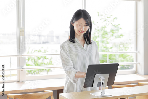tablet, japanese, woman, smart, self, check-in, hotel, reception, business, young, front, lobby, people, copy space, smile, indoor, sweet, work, shop, travel, tour tourism, customer service, counter, indoor, corporation, hospital, number, order, system, guest, unmanned, clearing, payroll, advantage, congestion