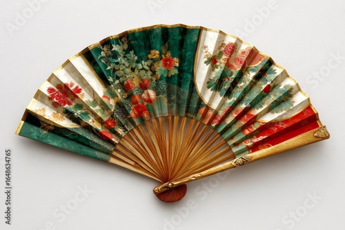 fan, summer, japan, sum, tradition, festival, culture, lovely, high class, elegant, gold, kimono, yukata, art, art, flower, knick knack, ornament, design, background, white background, antique, history, japanese tea ceremony, gilt, green, red, closeup, fan, japan, decoration, time, open