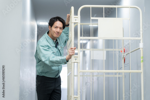 transport, warehouse, factory, working man, employee, staff, baggage, man, delivery man, business, production, circulation, courier service, carry, logistic, courier, sideline, sideline, hall, route, people, smile, transport, employee, lack, workwear, young, work, work, 30s, waist up, japanese, asian, profile, indoor, person, standing, smile, indoor, office