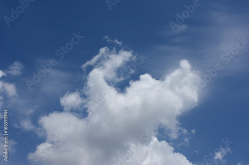 青空と雲「空想・雲のモンスター(雲の上部に出現しはじめたモンスター)」印象的、上に向かう、成長する、元気などのイメージ