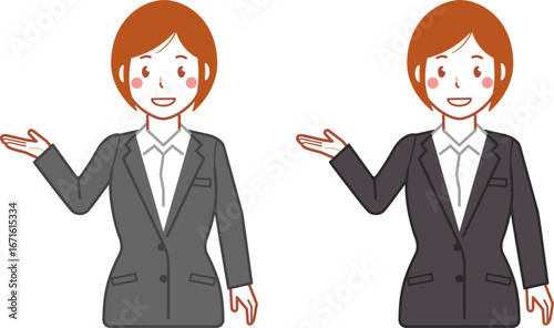 people, woman, business, work, please, refer, version, steer, illustrate, introduce, office, businessman, woman, pose, short hair, shortcut, missy, vector, illustration, sweet, pretty, suit, shirt, shirt, employee, salaried employee, ol, corporate, corporation, labor, work, waist up, grey, grey, material