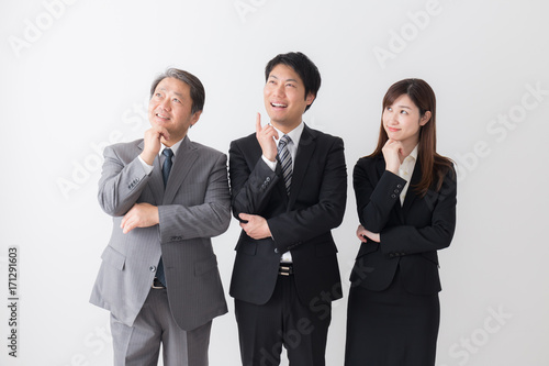 people, man, japanese, asian, young, 30s, 50's, 60's, middle-aged, office, business, businessman, salaried employee, suit, work, work, expert, president, director, boss, woman, ol, employee, staff, staff, team, fellow, business partner, secondary, manager, white background, thought, problem, contemplate, trouble, imagination, smile, flash