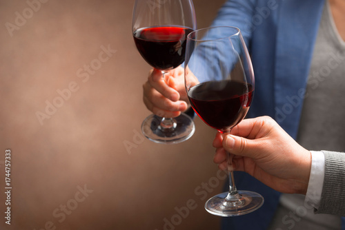 wine, toast, 50's, alcohol, happy, up, copy space, party, leisure, wine glass, drink, food and drink, indoor, fun, memory, anniversary, event, high class, 30s, hand, liqueur, celebrate, woman, people, red wine, adult, man, fellow, special, two people, japan, japanese, background, plural, friends, eatery
