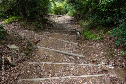 slope, staircase, green, wood, mountain, dirt, earth, forest, forest, route, climb, leaf, descend, hike, nature, landscape, japan, leisure, outdoors, open air, travel, descent, summer, fall, trail