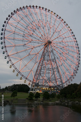 ferris wheel, funfair, wheel, fun, park, sky, amusement, ride, carnival, blue, attraction, yen, big, entertainment, round, leisure, view, lighting, enjoyment, high, white, japan