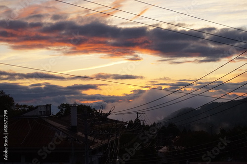 sky, sunset, dusk, open air, cloud, sun, nature, view, landscape, weather, weather, wire