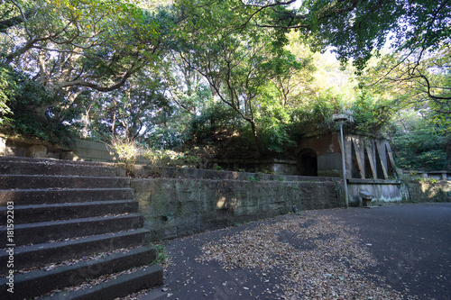 battery, nature, forest, rock, track, ruin, war, japan, tour tourism, grove, staircase, landscape, decay, wood, concrete, survivor, plant, sky, open air, sunny, history, leaf, green, forest, mountain, building, fall, kanagawa, time, war, culture, travel, defense, cannon, tower, wall, showplace, devastation, architecture, historic site