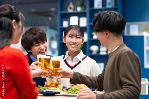 ales, highball, young, student, japanese, people, smile, fun, man, woman, eatery, liqueur, alcohol, waist up, face, casual, shop, store, drink, drink, dinner, fellow, meal, drink, friends, lifestyle, communication, health, health care, meal, toast, speaking, conversation, hear, indoor, portrait, joyful, rejoice, smile