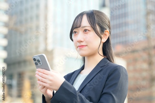 smartphone, smartphone, woman, suit, business, business district, japanese, people, call, open air, mobile phone, work, career woman, waist up, young, employee, smile, work, call, lifestyle, copy space, walk, mobile, trip, layover, contact, town, move, building, outside, look up, attendance, sweet, recruit, business building, tokyo