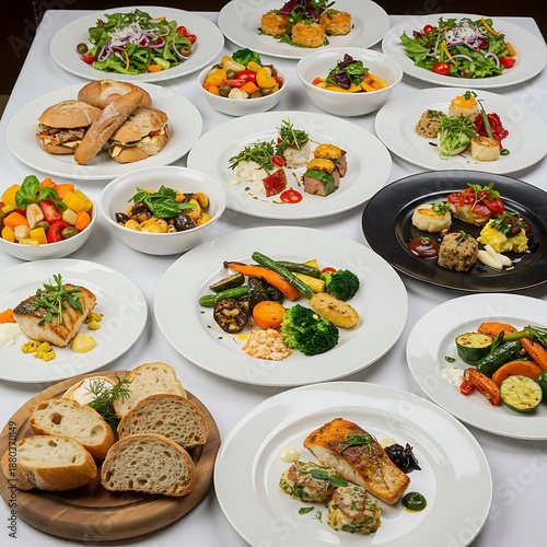 dish, meal, food, dish, table, white, eatery, foodstuff, vegetable, fish, meat, bread, salad, main course, starter, sweet, french cuisine, italian cuisine