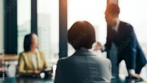 オフィスで会議するビジネスパーソンのグループのぼかしイメージ