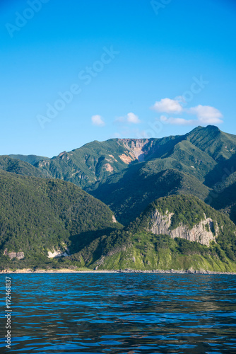 landscape, hokkaido, nature, sea, beach, escarpment, cliff, excursion, barge, tour tourism, journey, showplace, rock, blue skies, sunny, cruising, copy space, japan, view, sky, tourist attraction, cliff, cruise, shiretoko, vision, world heritage, grandiose, nature, emotion, environment
