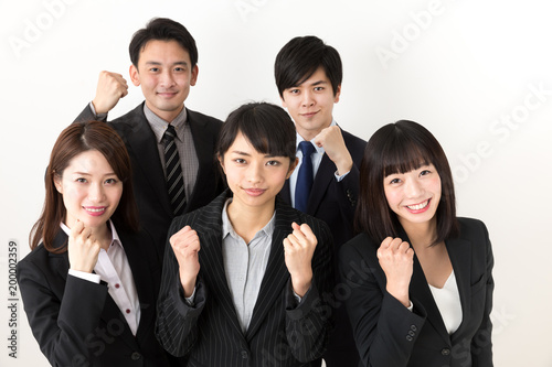 people, man, woman, businessman, salaried employee, ol, career woman, business, work, portrait, cheer, support, gesture, team, fellow, colleague, suit, beauty, good-looking, 30s, plural, group, group, smile, japanese, asian, chinese, white, cut-out, background