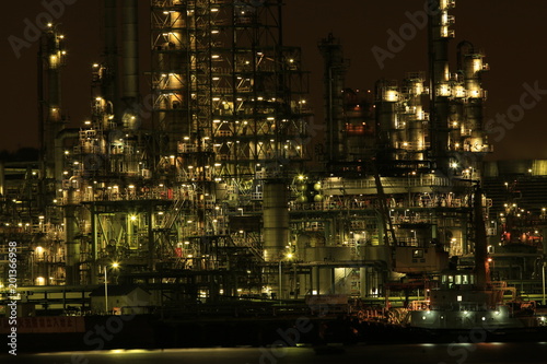 factory, nightscape, night, industrial complex, asia, japan, yokohama, plante, lighting, sea, boat, tug, light, port, industry, chimney, sea, landscape, industry, piping, metallic, manufacture, technology, pollution, essential oil, sparkling, open air