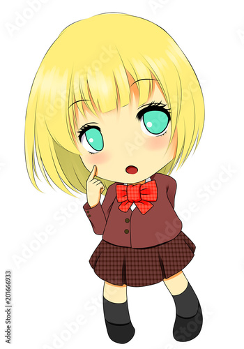 schoolgirl, girl, woman, blue eye, uniform, skirt, blazer, people, illustration, illustration, ribbon, contemplate