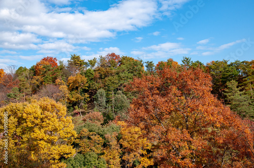 fall, fall, forest, wood, landscape, nature, sky, yellow, season, green, foliage, leaf, park, colourful, orange, red, blue, pigmentation, mountain, scenic, outdoors, hill, grove