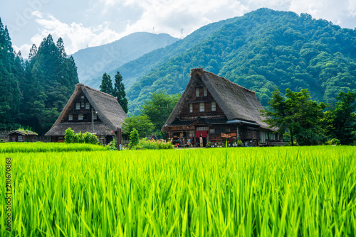 landscape, world heritage, nature, japan, countryside, mountain, human settlement, building, tourist attraction, landmark, tour tourism, blue skies, cloud, sunny, sky, summer