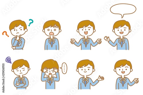 businessman, man, expression, smile, people, young, business, sweet, waist up, face, pose, suit, version, illustration, image, pointing, refer, guide, front, loose, feeling, ok, refreshing, illustration, problem, drop, surprised, plural, variation, set