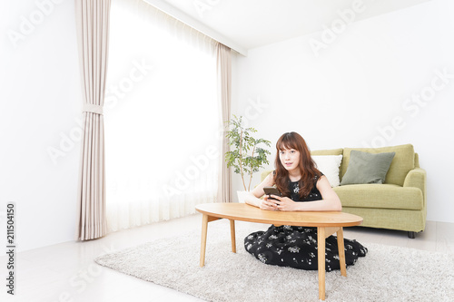 vacation, rest, holiday, house, home, relax, relax, fun, smartphone, smartphone, net, shower, cosmetic, couch, online, break, home, call, call, smile, ease, korean, chinese, asian, japanese, care, woman, young