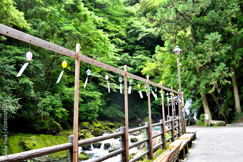 wind chime, summer, waterfall, izu, nature, landscape, water, spring, cool, flow, open air, canyon, stream, healing, water surface, shizuoka, green, tone, tone, cold, green, sweet