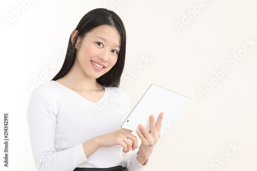 タブレットを持つ女性