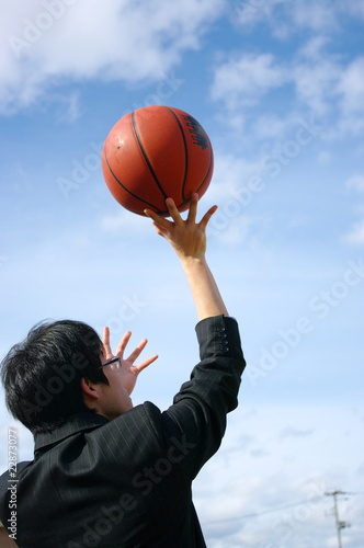 asia, asian, smile, suit, cravat, business, businessman, sport, sky, cloud, hand, basketball, ball, basketball, ball game, ball, portrait, lifestyle, shirt, office, people, work, corporation, employee, work, signal, success, newcomer, japanese, man, man, youth, youth, cool, mask