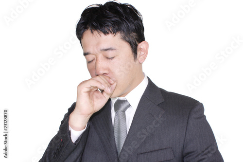 salaried employee, business, willingness, japanese, asia, asian, studio, suit, businessman, alone, work, blank space, work, japan, orient, man, white, business suit, sneeze