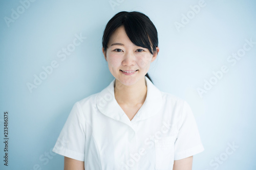 woman, nurse, nurse, nurse, medical care, labcoat, hospital, doctor, girl, young, sweet, black hair, occupation, work, work, marode, model, japanese, portrait, sky blue, smile