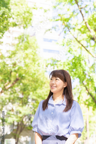business, woman, smile, departure, depart, preparation, trip, shopping, shopping, work, work, copy space, people, japanese, success, happy, happy, happiness, ol, building, city, town, green, wood, open air, eco, ecology, nature, natural, environment, pretty, lovely, hustle, lively, fun, smile, light, smile, 30s