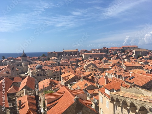 ドゥブロヴニク旧市街のオレンジ屋根の街並みとアドリア海