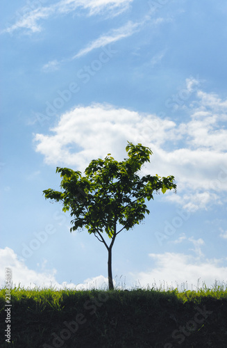 1, wood, sky, landscape, grass, cloud, lonely, nature, field, green, summer, meadow, blue, rural, countryside, single, surrounding, season, global, plant, material