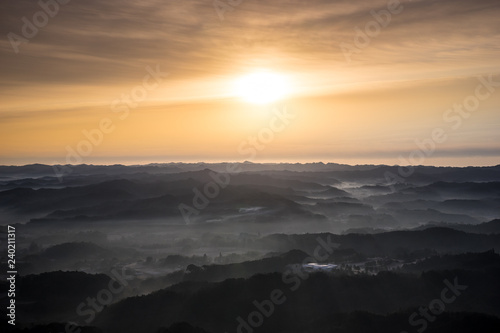 sunset, landscape, sky, cloud, sunrise, nature, city, sun, panorama, view, mountain, green, wood, travel, summer, forest, orange, village, blue, hill, panoramic, depression, evening, sunlight, azalea, sunset, lookout