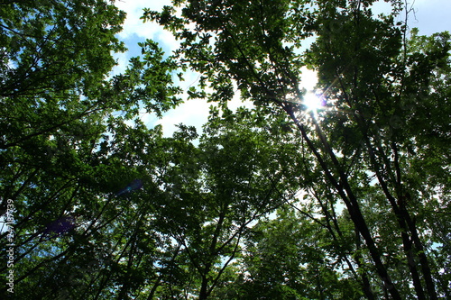 wood, forest, nature, green, sky, leaf, summer, branch, foliage, spring, sun, trunk, park, natural, sunlight, landscape, pine, birch, oak, blue