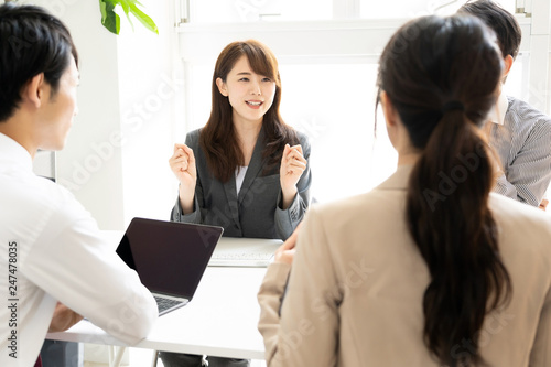 meeting, meeting, presentation, boardroom, man, woman, people, salaried employee, businessman, ol, career woman, speaking, consultation, chat, conversation, consultancy, adviser, business, personal computer, notebook, binder, teamwork, team, colleague, secondary, boss, suit, work, young, work, smile, plural, good-looking, beauty, japanese, asian, chinese