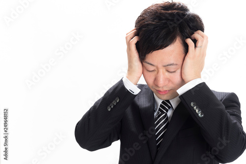 businessman, business, isolated, bother, young, portrait, stress, person, suit, head, white, people, pain, man, problem, expression, thought, upset, depression, bewildered, sad, weary, frustration, hand, salaried employee, man, japanese, people, cephalalgia, marode, stress, neurosis, apprehension, flop, loss, fall, divorce