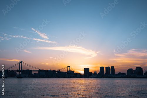 (東京都ー都市風景)夕焼け空に包まれるレインボーブリッジ3