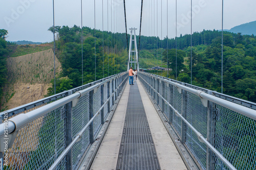 kyushu, suspension bridge, big, mountain, stream, journey, travel, view, sunny, forest, bridge, canyon, waterfall, healing, scene, fall, sky, background, nature, tour tourism, tourist attraction, long, cloud, blue skies, landscape, high
