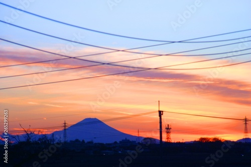 夕焼けと富士山