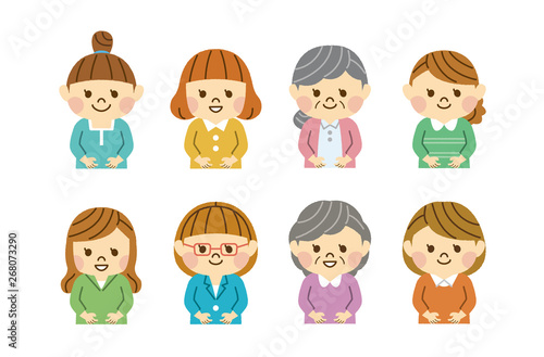 people, woman, woman, girl, aged, babushka, grandmother, grandparent, mother, mother, mother, expression, waist up, set, vector, pretty, sweet, glasses, smile, smile, icon, coiffure